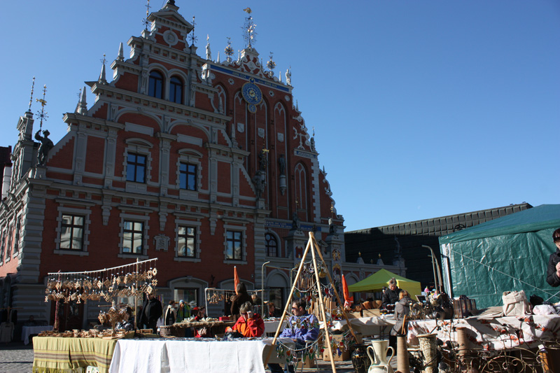 Ertesi sabah kahvaltı sonrası şehri gezmeye Belediye Meydanı’ndan başlıyoruz. Buradaki pembe renkli pasta gibi çok güzel bir yapı olan Blackheads (Karabaşlılar) binasına geliyoruz. İnsanda yeme isteği uyandıran bu bina da Riga’nın sembollerinden biri. Bina zenci yöneticisi olan bekar yabancı tüccarların kurdukları ticaret binası imiş. Özellikle 1580 ve 1886 yılları arasında burası aktif olarak bir ticaret merkezi imiş.