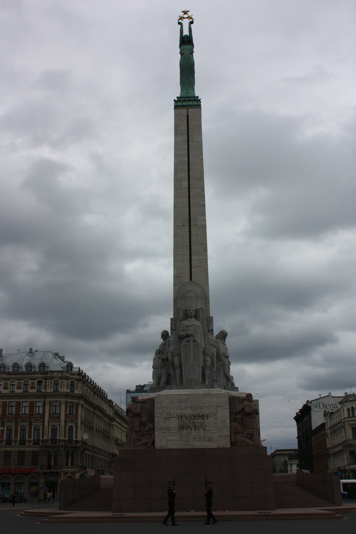 Albert İlea yani Albert caddesi, Riga’nın en şık caddelerinden. Buradaki 1900’lü yıllarda yapılan binaların hemen hemen hepsi mükemmel bir mimari sergiliyor. Binaların alt katları 1. ve 2. katları daha sade, 3. ve 4. katları ise daha süslemeli, heykel ve kabartmalar daha çok kullanılmış. Bu güzel caddeden yürüyerek Hürriyet meydanına geliyoruz. Hava karardı, ancak gökyüzü parlament mavisi. Hürriyet meydanında, elinde ülkenin üç bölgesini temsil eden 3 yıldızı tutan bir heykel bulunuyor. Bu heykel 1934’te yapılmış. Gündüz buraları tekrar gezeceğiz.
