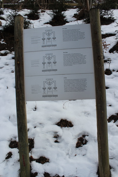 Şatoya yaklaştıkça ara ara tabelalar çıkıyor karşımıza ve bu tabelalarda Prenslik, yönetim biçimi ve ülkenin tarihçesi anlatılıyor.