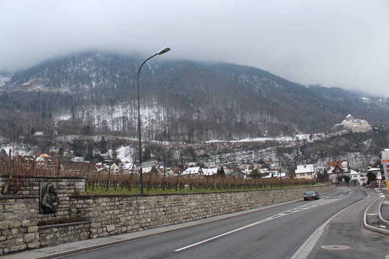 Gezinin hem en keyifli hem de en meşakkatli bölümü Schloss Vaduz, yani Vaduz Şatosuna çıktığımız kısımdı. Prens ve ailesi bu şatoda ikamet ettiği için Şatonun içi gezilemiyor. Ancak Şato yüksek bir tepede yer aldığı için, bu bölgeden kentin manzarası çok güzel. Tepeye tırmanmaya başladıkça yerdeki kar da artmaya başlıyor.
