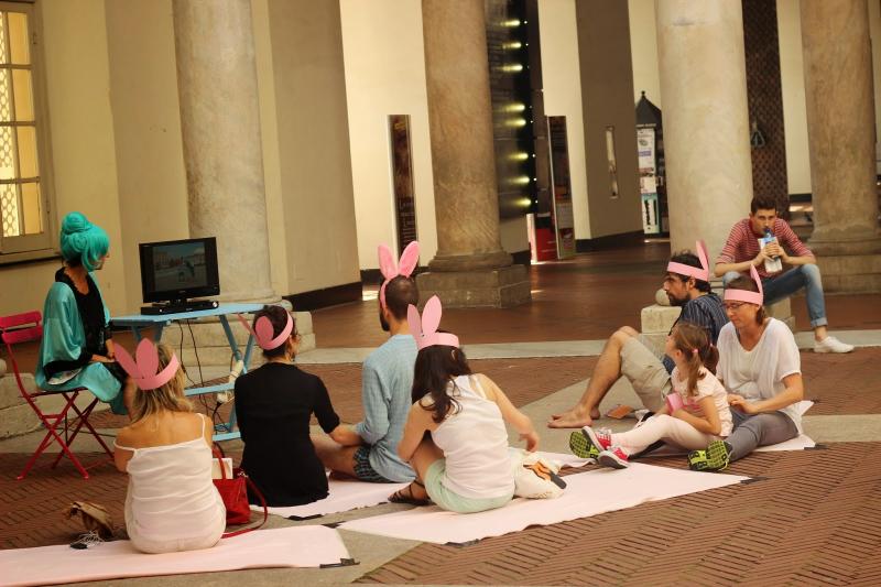 Meydanın sol tarafında İngiltere’den gelmiş interaktif sohbet etkinliğine 15 dakika katıldık ve başımıza taktığımız bu pembe kulaklarla oldukça eğlendik. Daha sonra buradan ayrılıp şehrin alışveriş caddelerini keşfe çıktık.