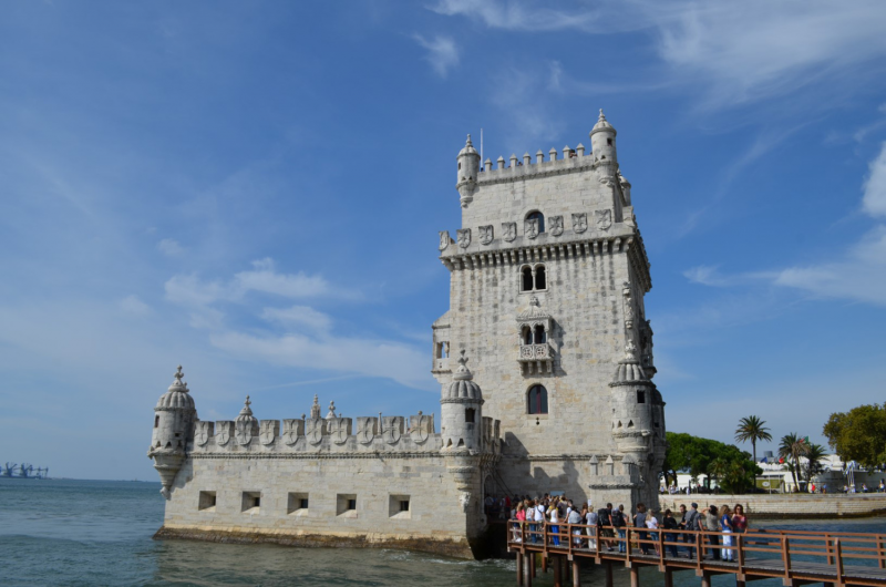 Manastırdaki uzun ve etkileyici gezimizin ardından son fotoğraflarımızı da çekerek yine Lizbon’un en önemli yapılarından birisi olan Torre de Belem yani Belem Kulesi’ne doğru gidiyoruz. Tabii ki her yerde olduğu gibi burada da giriş sırası için beklemeden edemiyoruz. Hatta bu kule oldukça küçük olduğundan içeriye belli bir sayının üzerinde ziyaretçi sokmuyorlar. Bu nedenle sadce bilet sırası beklemiyoruz aynı zamanda içeriyi gezen insanların da dışarıya çıkmalarını bekliyoruz. Mimari anlamda yine çok etkileyici olan bu yapı Coğrafi Keşifler'in de önemli noktalarından birisiymiş zamanında ve yine UNESCO listesinde olan yerlerden de birisi.