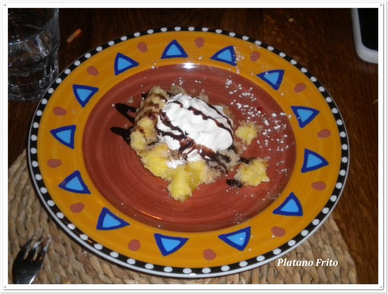 Diğer önerim ise Platano Frito tatlısı. Kızartılmış muz üzeri vanilya dondurma ve karamel ile servis ediliyor.