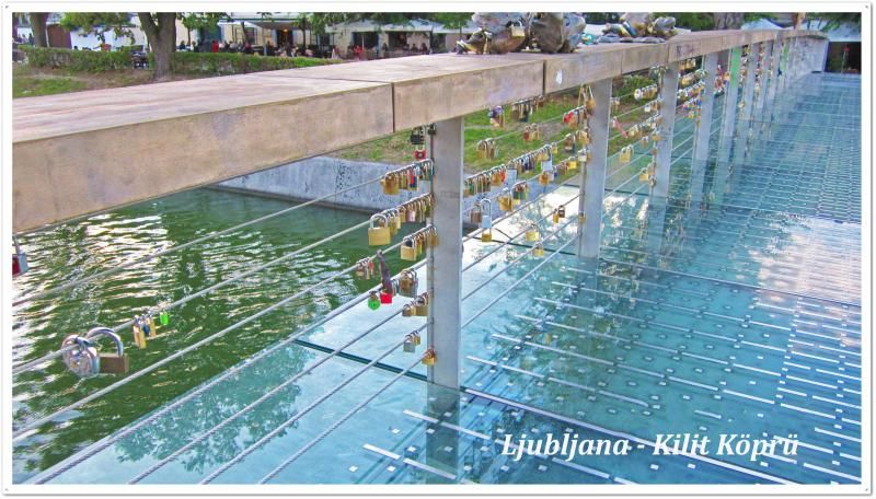 Eğer Preseren’den sola değil de sağ tarafa ilerlerseniz bu köprü karşınıza çıkacak. Her Avrupa şehrinde bulunan kilit köprülerin benzeri.