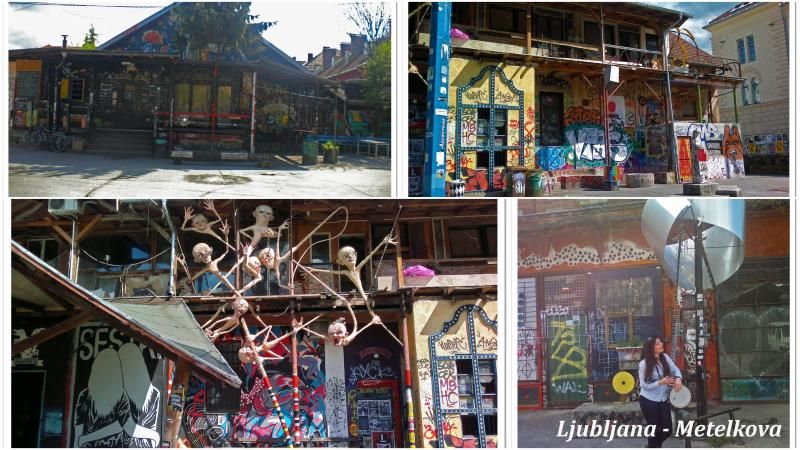 Ljubljana’da en ilginç yer neresi diye sorarsanız hiç düşünmeden Metelkova derim. Avrupa’da gezdiğim hiçbir şehirde böyle değişik bir mekana rastlamadım. Öğrencilerin olduğu kadar turistlerin de bolca uğradığı bir mekan. Grafitiler, duvar resimleri, içindeki bir ton heykeli ile ücretsiz bir sanat bölgesi diyebiliriz geceleri ise eğlence mekanı. Tamamen orijinal ve kesinlikle görülmeye değer bir yer burası. Bünyesinde birçok bar, galeri, stüdyo bulunur ve geceleri her çeşit insanla karşılayabileceğiniz, her tür müzik dinleyebileceğiniz bir yerdir.