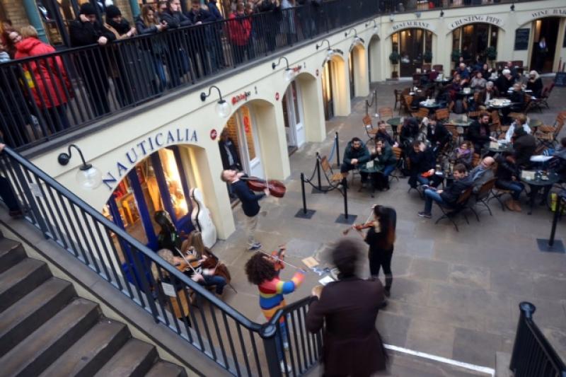 Ufak bir kahve molası, ilginç birkaç dükkan dolaşmasının ardından öğle yemeği için Covent Garden’dayız. Burası Viktorya döneminde meyve, sebze ve çiçek pazarıymış. Bugün gelinen noktada, harika bir mimari dokunuşla restoranlar ve güzel dükkanlarla çevrili bir merkez. Ayrıca sokak gösterilerinin şahane örneklerini izleyebiliyor ve küçük klasik müzik konserlerine rastlayabiliyorsunuz. Londra’da kaldığımız süre boyunca birkaç kez yolumuzu buraya düşürdük ve ailecek bir tiyatro oyuncusunun performansına konu bile olduk. Sanatçı, Türkiye’den geldiğimizi öğrenince performansınının büyük kısmını Türkçe’ye çevirmemizi istedi. Çok keyifli bir etkinlikti.
