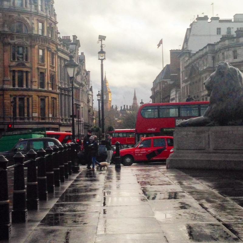 Akşamüzerine doğru Trafalgar Square’deyiz. Meydandaki dört bronz aslanın her birinin önünde fotoğraf çekiliyoruz. Bizim küçük gezgin buraya gelmeden önce çocuklar için yazılmış pek çok Londra kitabını okudu ve bu aslanlar onun en çok ilgisini çeken mevzu oldu.