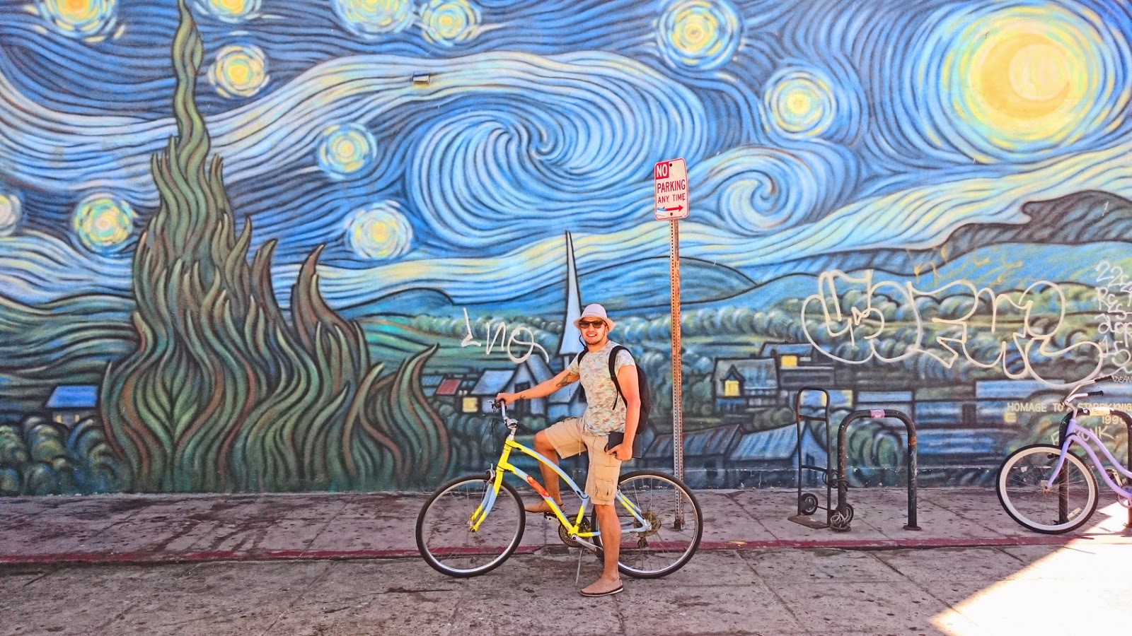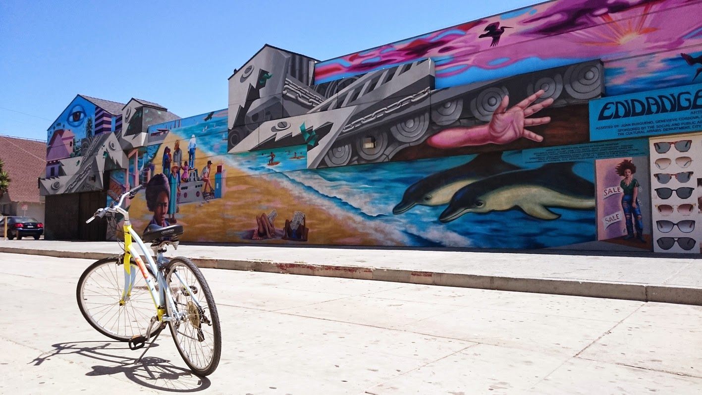 Venice; evsizleri, dilencileri, satıcıları, geliştirdikleri vücutlarını seve seve sergileyen sporcuları ve harika mimari tasarıma sahip evleri ile şehrin en ağzı açık gezilen yerlerinden biri. Boylu boyunca uzanan sahil yolu bisiklet, yayalar için ayrılmış ve oldukça geniş sahili ile kaykay, paten vb. etkinliklere ev sahipliği yapan bol hareketli bir bölge. Los Angeles'ta tam da olması gerektiği gibi sokak sanatı şehrin her alanına yayılmış biçimde. Bu yüzden ilk rotamı Venice olarak belirleyerek kiraladığım bisikletimle yaklaşık 2 saat süren turuma haritamın yardımı ile başladım.