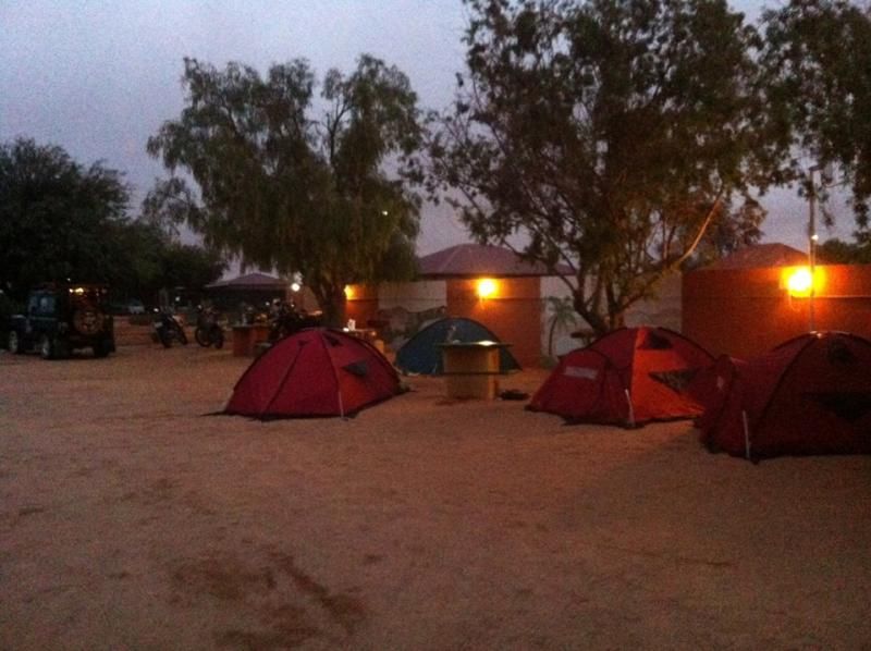 Yaklaşık 650 km’lik asfalt ve off road ağırlıklı yolculuğumuz sonrasında gün batımıyla birlikte Namibya sınırına yakın kamp bölgemize ulaştık. Bu tarz seyahatlerde özellikle işin içinde kamp varsa iş bölümü çok önem kazanır. Bir grup kamp alanını hazırlar, diğer bir grup ise kampların vazgeçilmez ortamı ateş ve mangal kısmını üstlenir ve sonunda keyifli bir ortam hızla oluşur. Vardıktan tam 45 dakika sonra yaşam alanımız kurulmuş ve ertesi gün ve sonrası için sohbetlere başlamıştık bile. Uzun süreden sonra çadırda uyumayı özlemiş biri olarak mis gibi bir havada keyifle uyudum diyebilirim kendi adıma : )
