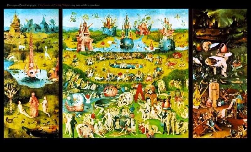 Hollandalı ressam Bosch'un son dönemlerine rastlar. Bu eserinde, dünyanın varoluşundan 3 gün sonrasını anlatıyor. 3 ayrı bölümlü olan tabloda; sağ bölüm cehennem, sol bölüm cennet, ortada bahçenin eğlencelerini tasvir ediyor. İlginç ve derinlikli bir eser. Ressam dünyanın eğlenceli şeylerini, zevklerin kötü sonuçlarını gösteriyor; sembolik resmetmiş.