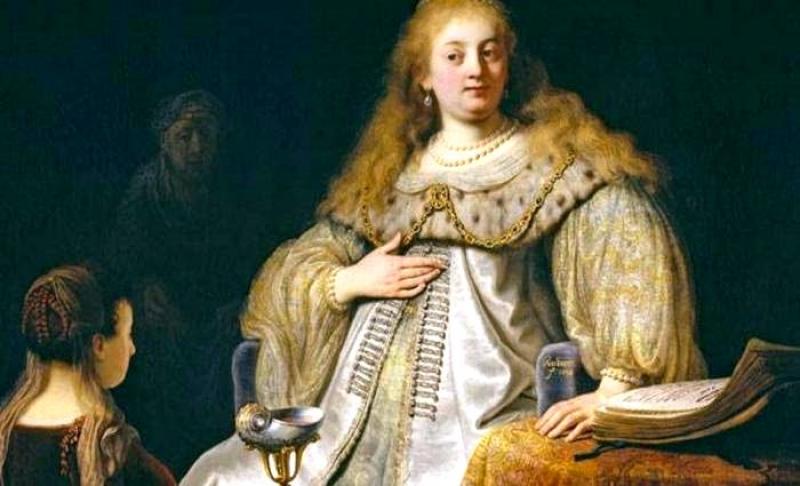 Sıradaki eserimiz Rembrandt'ın "Judith at the Banguet of Holofernes" tablosu... Ressamın ünlü resimlerinden biri. Portredeki yüz ifadesindeki ustalık, ışık gölgenin ustaca kullanımı, giysilerin zengin anlatımıyla bütünleşiyor.