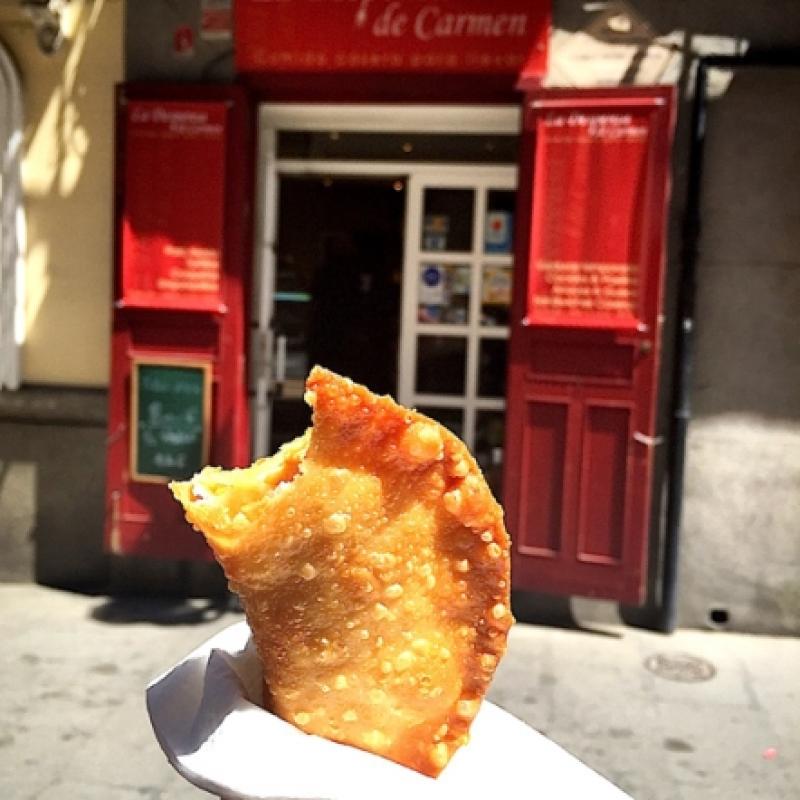 Madrid'in arka sokaklarında dolaşmaya devam ettiğinizde, Isabella II Meydanı'na yakın, bizim ev yemekleri konseptimize benzer, lezzetli mi lezzetli Empanadia'lar pişiren La Despensa de Carmen’i göreceksiniz karşınızda. Empanadia, bizim çiğ böreğin muadili. Çok leziz (Calle de Santiago, 14).