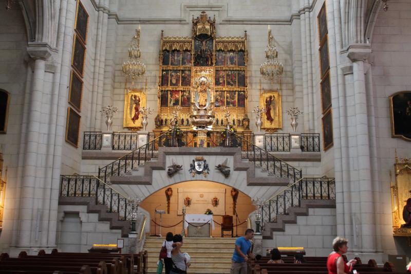 San Miguel pazar yerinin (Buradan pazar yeri diye bahsederken komik görünüyor ama öyle J) bir üst sokağında yer alan Calle Mayor üzerinden yaklaşık 5 dakika uzaklıkta yer alan Almudena Katedrali’ nin yapımı 1883 yılında başlamasında rağmen yıllarca tamamlanamamış ve 1993 yılında Papa II. Jean Paul tarafından açılmıştır. Katedralin iç dizaynı, birçok katedrale göre daha modern tarzda yapılmıştır. Madrid Kraliyet Sarayı ile yan yana bulunmaktadır.