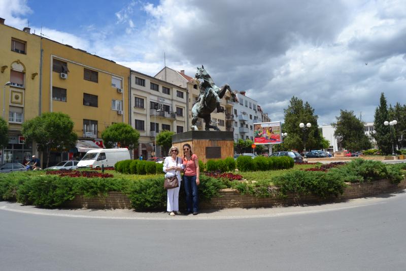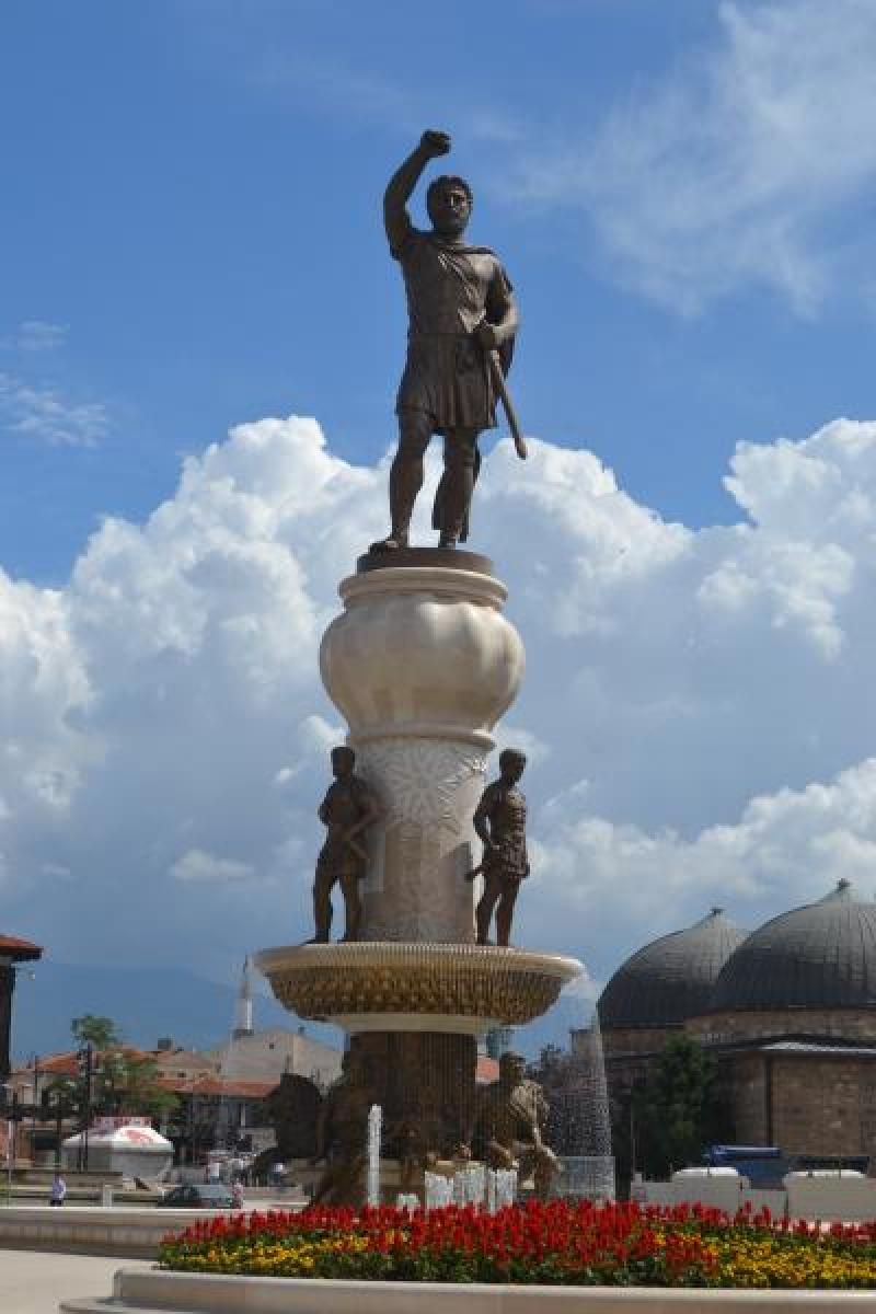 Taşköprü'yü geçince vardığınız meydanda Aziz Kiril ile Metodius'un heykelleri ve Makedon Kralı II. Philip'in heykelini görüyoruz.