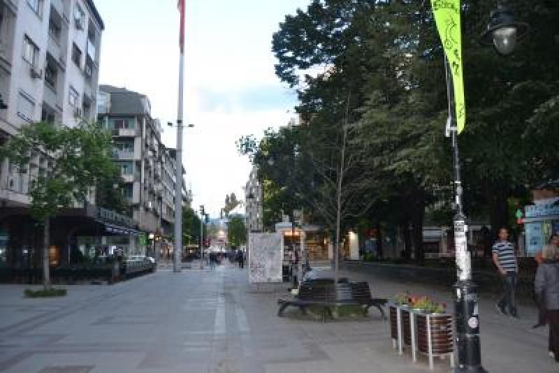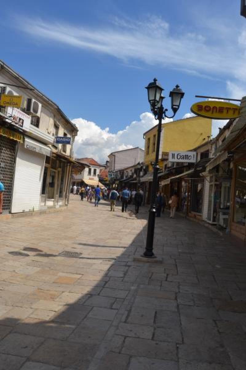 Vardar Nehri kıyısında sağ tarafa dönüldüğünde nehir boyunca uzana restoran ve kafelerden birinde akşam yemeğimizi yedik. Yemekten sonra tekrar eve dönerken meydan ve meydana inen araç trafiğine kapalı sokaklarda dolaştık. Meydana 5 dakika yürüme mesafesinde, bir Migros iştiraki olan Ramstore alışveriş merkezi yer almaktadır. AVM'de birçok Türk mağazası bulmak mümkün.