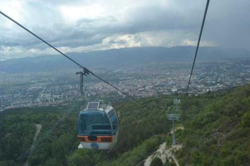 Yemekten sonra arabaya binerek şehre güneyden bakan Vodno Dağı'na doğru gidiyoruz. Araba ile 15 dakika yol aldıktan sonra dağa tırmanan teleferiklerin kalktığı bir parka geliyoruz. Teleferik ile dağa tırmandık.