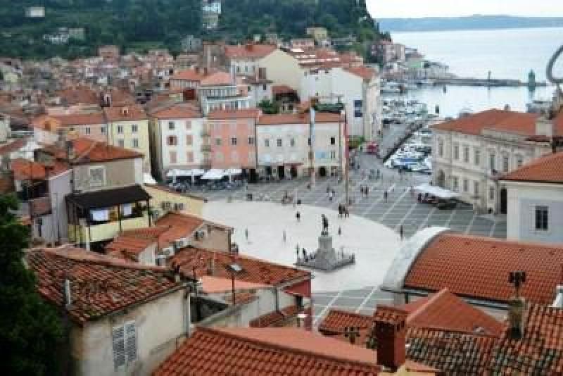 Kısa bir sahil şeridi olan ve Slovenya'da Orta Çağ mimarisini koruyan tarihi ve turistik değerleri olan Piran'a gitmek üzere Postojna'dan 75 km batıya yol kat ediyoruz. Piran bir yarımada üzerine kurulmuş küçük bir şehir. Daracık sokakları nedeniyle şehre turistlerin araba ile girmesi yasak. Arabayı şehrin girişindeki otoparka bırakarak şehre yayan olarak giriyoruz. Bu durum büyük bavulları olan turistler için sıkıntılı anlar yaşanması anlamına gelmektedir. Arabanın park edildiği otopark şehre doğru inen bir yokuş üzerinde olup, şehirden otoparka gidiş bavullarla birlikte eziyete dönmektedir.