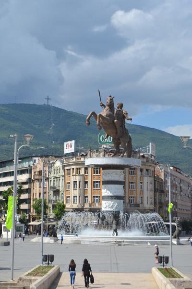 Üsküp'e vardığımızda ilk iş internetten kiraladığımız evi teslim alarak eşyalarımızı bırakmak oldu. Şehri en önemli meydanı olan Makedonya Meydanı'na 10 dakikalık yürüme mesafesindeki eve yerleşir yerleşmez Vardar Nehri kenarındaki meydana yürüyoruz.