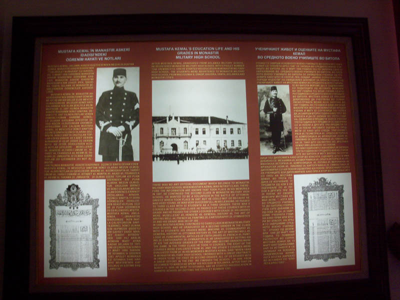 Bu nedenle biz de ilk olarak, günümüzde müze olarak kullanılan Manastır Askeri İdadisine gidiyoruz. Burası geniş bir bahçe içerisinde yer alan iki katlı beyaz renkli eski bir bina. Kapının girişinde Türkçe, İngilizce ve Makedonca olmak üzere 3 ayrı dilde “Çağdaş Türkiye Cumhuriyeti’nin yaratıcısı ve ilk Cumhurbaşkanı Mustafa Kemal Atatürk 1899 yılında askeri idadiyi bu kışlada bitirdi” yazıyor. Bu bizi çok gururlandırdı.