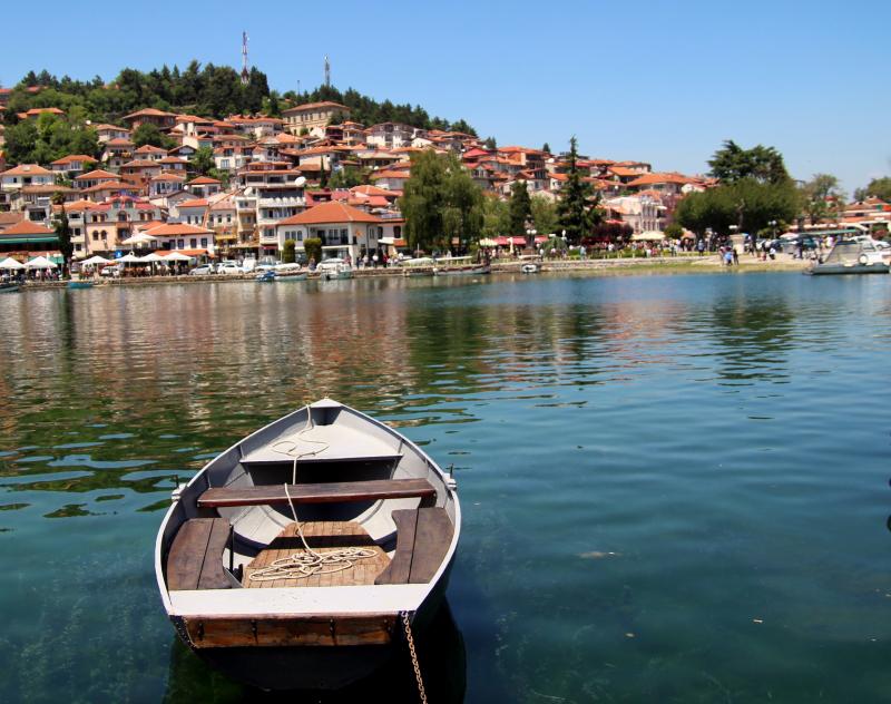 Şehir Ohrid Gölü'nün kenarına kurulmuş. Tarihi 6000 yıl öncesine kadar gidiyor. 1979 yılından beri Unesco Dünya Mirasları listesinde. Şehrin nüfusu sadece 42.000. Hakkıyla plan yapıldığında yarım günde gezilebilecek bir yer. Şehir merkezinde börekle kahvaltı ettikten sonra Ohrid Gölü'nde tekne turu yapmaya çalıştım. Burada turlara, gruplara özel tekne turları var. Boğazda dolunca kalkan teknelerden beklemeyin. Teknelerin çoğunda Türk kafileler görmek mümkün. Yalnızsanız tek şansınız küçük bir tekne kiralamak. 15 Euro’dan pazarlığa başlıyorlar ama 10 Euro’ya tamam diyorlar. Tekneler 5-6 kişi alabilir, civarda tek gezen birini görürseniz beraber açılmayı teklif edebilirsiniz.