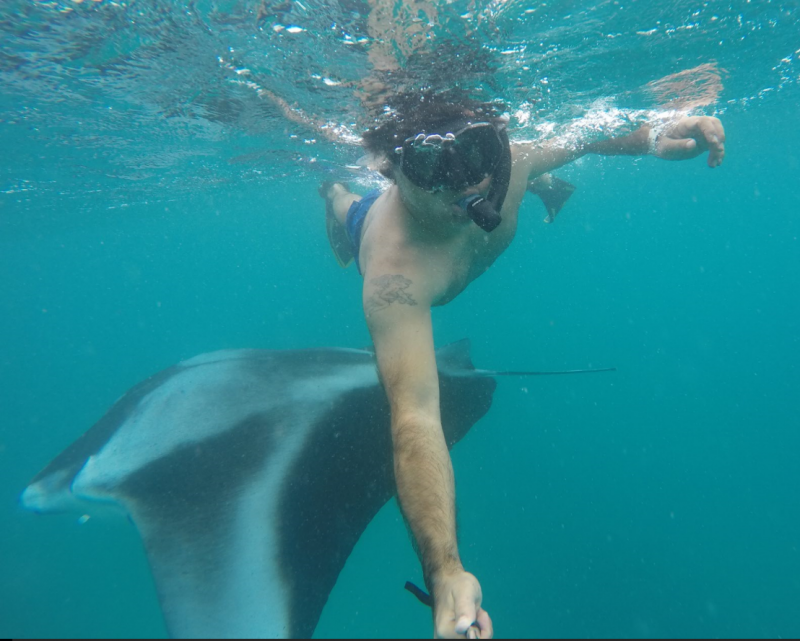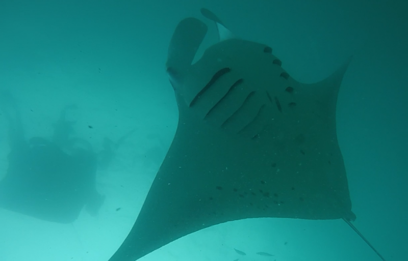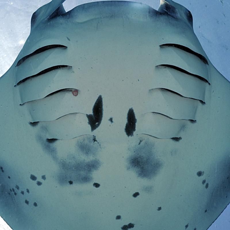 Birkaç kare fotoğraflarını alırken ne kadar heyecanlı olduğumuzu anlatamam. Mantalar defalarca sorti yapıp sağımızdan, solumuzdan, altımızdan geçiyorlar. Derken biraz da alttan çekim yapabilmek için biraz dalıyorum ve mantalar bu sefer de üzerimden geçerken karın görüntülerini çekiyorum. Neden mi? Çünkü manta vatozlarının karınlarındaki siyah beneklerin oluşturduğu desenler, her bir manta için benzersiz bir iz, tıpkı insanların parmak izleri gibi. Hatta bu izlerden mantaların hangisi olduğunu tespit etmek de mümkün.