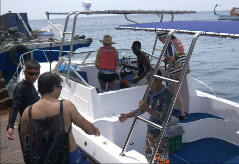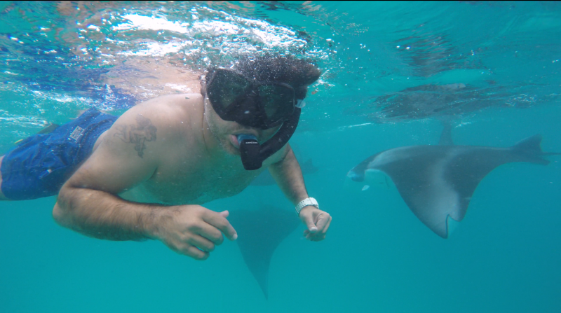 Bu ön bilgilerden sonra teknedeki sahnemize geri döndürmek istiyorum sizi. Özenle şarj edip hazırladığımız sualtı kameralarımız, maske ve paletlerimiz ellerimizde heyecanla beklerken tekne kaptanı telsizle konuşuyordu. Mantalar tek bir noktada sabit kalmıyor, devamlı dolaşıyor haliyle. Bölgede dolaşan tekneler ise birbirleriyle haberleşiyor ve mantaların yerini tespit ettikleri anda bizimki gibi turist teknelerine haber veriyor ki tura katılanlar okyanusta boş boş yüzüp de geri dönmesinler, en azından mantaları görme şansları yükselsin.