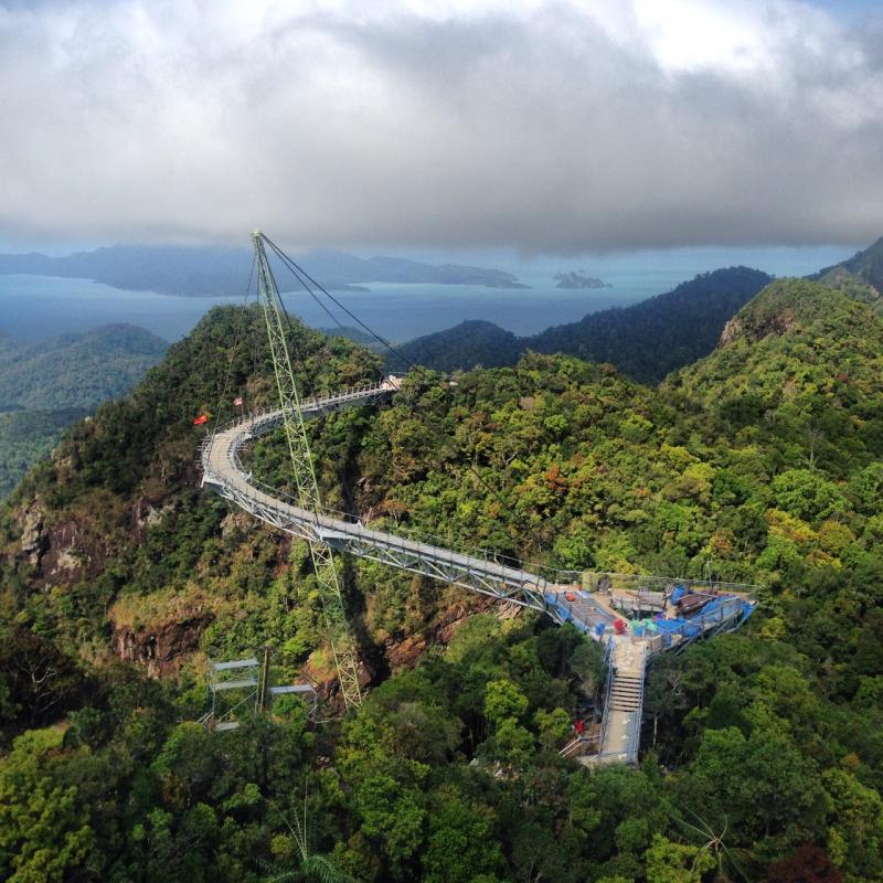 Langkawi Adası'nda birkaç tane daha şelale olduğunu duydum ama burası hemen Sky Bridge’in yakınında ve beni fazlasıyla tatmin ediyor. Artık Sky Bridge (Gökyüzü Köprüsü)'e çıkma zamanı geldi. Teleferikle Langkawi’nin en yüksek tepesine çıkıyorsunuz ve buradan görünen manzara mükemmel. Gökyüzü Köprüsü benzerini hiçbir yerde görmediğim kadar farklı.