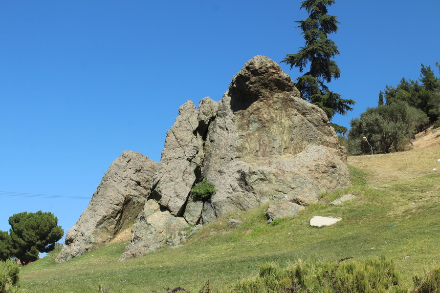 Spil dağı mili parkının girişinden aşağıya doğru inerken meşhur Niobe Ağlayan Kaya ile karşılaşıyorum.