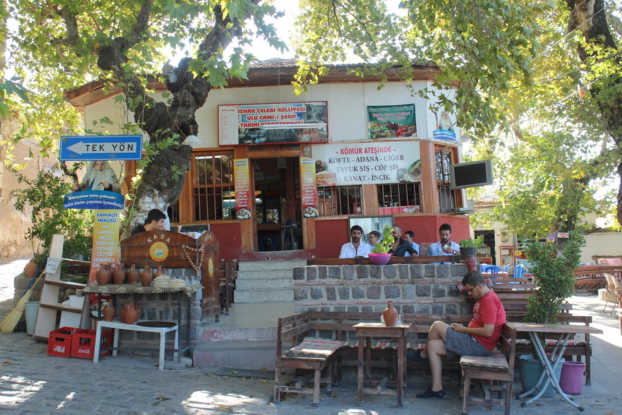 Caminin manzarası güzel olduğundan, hemen dışında da çok sayıda çay bahçesi yer alıyor. Bunlar arasında en dikkat çekici olanı ise İshak Paşa Külliyesi Ulu Cami-i Şerif Tarihi Kıraathanesi… Ben bir kıraathaneye cami adının verilmesine pek anlam veremedim ama, vardır bi bildikleri diyerek yoluma devam ettim.