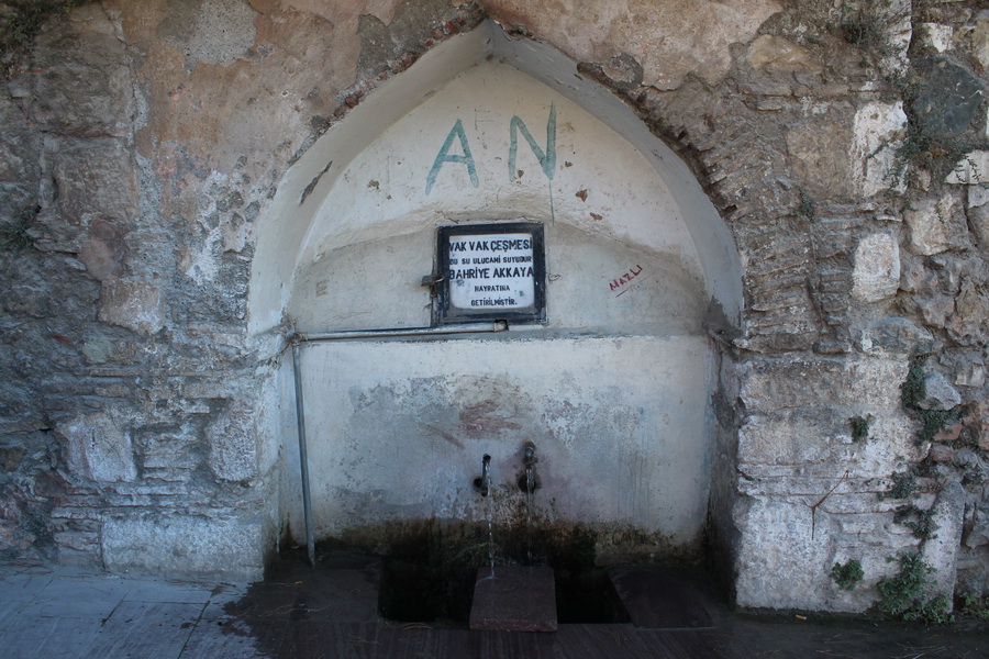 Mahalleden yavaş yavaş aşağıya inerken üzerinde “Bu su Ulu Cami suyudur” yazan Vak Vak Çeşmesini görüyorum.