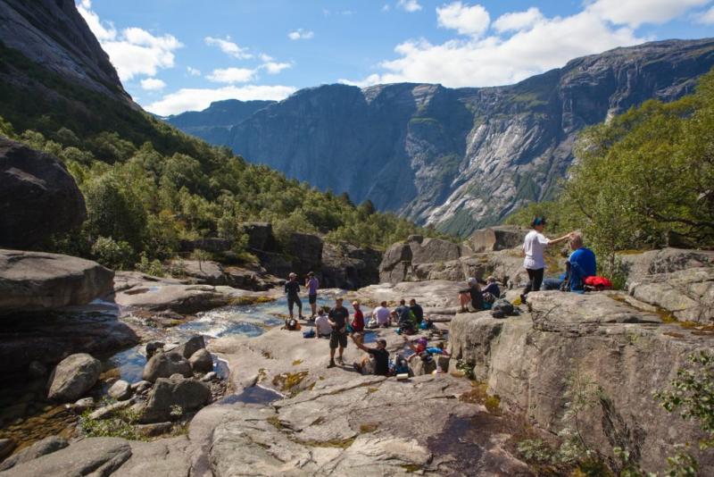 Buraya ulaşmak baya zahmetli bir yolculuk istiyor. Kısaca belirteyim. Bergen ve Flam’a daha yakın bir bölgede. Önce Odda bölgesine geliyorsunuz. Odda-Flam yönünde Odda şehrinden çıkarken ikinci tünel çıkışından sağa dönüyorsunuz ve 6 kilometre kadar yol yapıyorsunuz. Mesele ondan sonra başlıyor. Aracınızı parkettikten sonra 4 ile 6 saat arasında değişen bir tırmanışa geçiyorsunuz. Bu parkurda bitirmeniz gereken yol 10 kilometre.