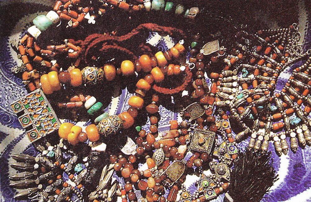 Deri çanta ve cillabiye altına giyilen ucu sivri deri terlik Belgha, bedevi takıları, Fas’a özgü el yapımı seramik objeler, misk, amber tütsüler ve çeşit çeşit baharatlar çarşının vazgeçilmez parçaları.