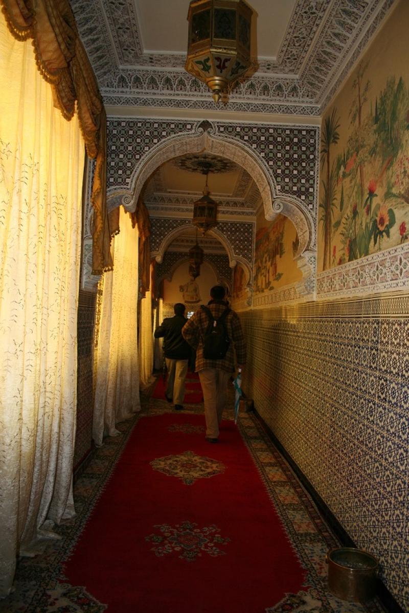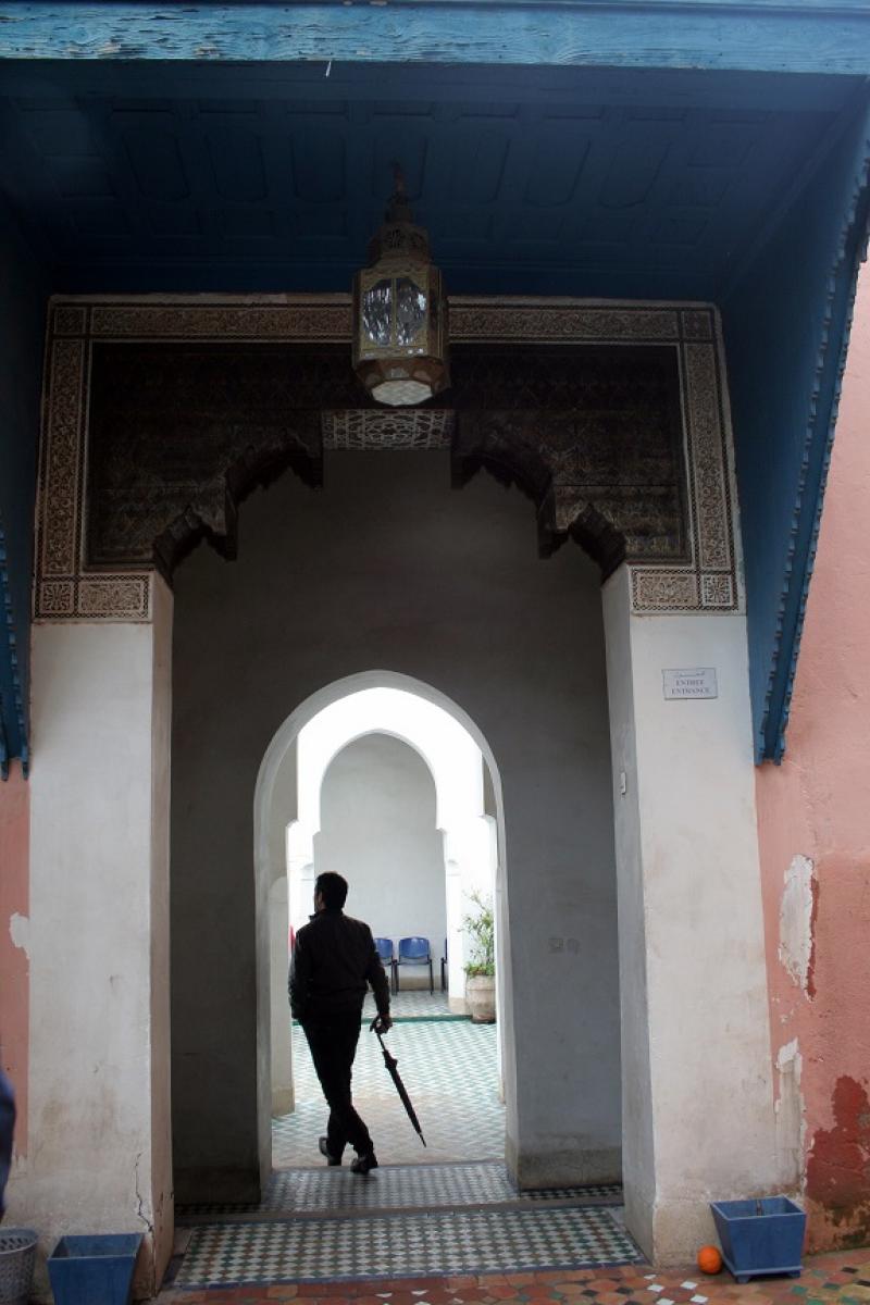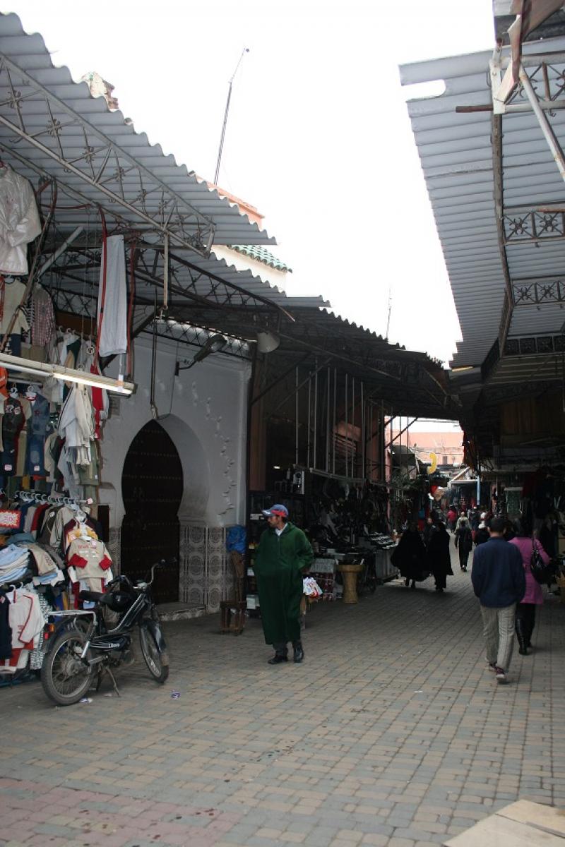 Bu saraya araçtan inip kısa bir yürüyüşle ulaşabiliyoruz. Ama ne yürüyüş? Geçtiğimiz sokaklar, evler ve yerel kıyafetleri olan cellabe (Fas’ın geleneksel kıyafeti) giymiş insanlar bana bir “Binbir Gece Masalları”ndaymışım hissi veriyor. Hızlı hızlı sokaklardan, çarşılardan geçiyoruz. Kimi zaman atlı arabalar bizi ezmesin diye kaçıyoruz, kimi zaman birine çarpmamaya çalışıyoruz. Tam bir curcuna içinde sanki bir geçmiş zaman atmosferi içindeyiz. Kimsede bizim farkımızdaymış gibi görünmüyor. Cin bizi geçmiş zamana mı getirdi acaba?