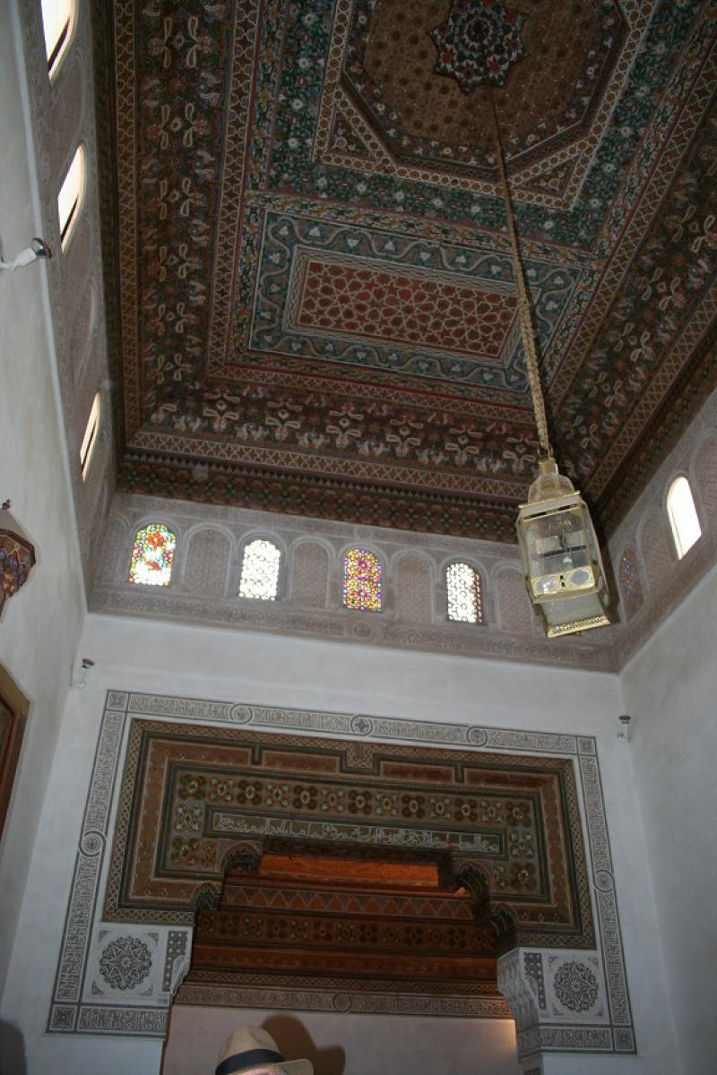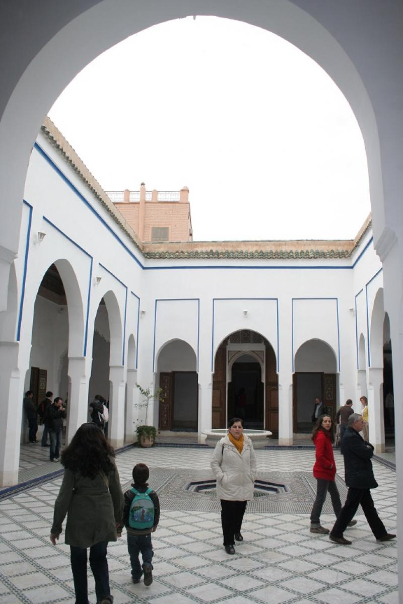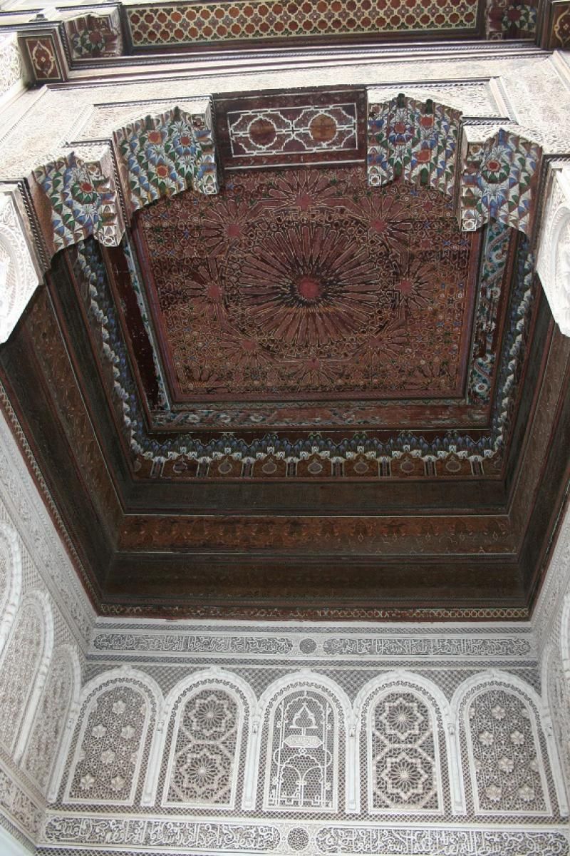 Evet evet Behiye Sarayı’ndayız şimdi. Bu karmaşanın tam ortasında bir saray… Marakeş veziri ya da yöneticisi ilk karısı Behiye için yaptırmış bu sarayı. Zat-ı muhteremin toplam 4 karısı varmış ve bir sürü de cariyesi… Vezirin 4 eşinden ilki Behiye imiş ve sarayda en büyük bölüm ona ait, diğer 3 eşin de sarayda kendi odaları var. Ama en büyük ve görkemlisi Behiye’ye ait. Saraydaki tavan süslemeleri, küçük ve gizli bahçeleri, ahşap işçiliği, mozaikleri hepsi dikkat çekici ayrıntılarla dolu. Ne yazık ki zamanımız kısıtlı olduğundan Cin önde biz arkada koşturmacaya devam ettik Keşke uçan halısı da olsaydı. Bu keşmekeşte çok işe yarardı.