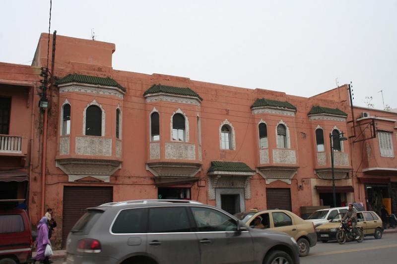 Yolda verilen kısa mola dahil toplam 3,5 saat sonra bir palmiyelikten şehre girdik. Uzaktan karlı Atlas dağları görünüyordu. Karlı dağlarla tezat palmiye ağaçları ise kızıl şehirle bütünleşmişlerdi ve masalsı bir hava vermişlerdi. Neden “kızıl şehir” dedikleri şehre girer girmez anlaşılıyor: Evler hep kızıl renkte. Kum fırtınalarının kirliliğinden kurtulmak amaçlanmış bu renk seçiminde.