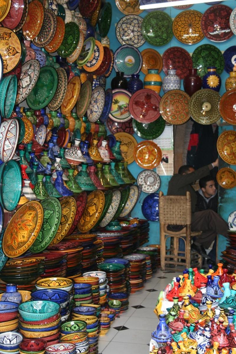 Buradan çıktıktan sonra yine yürüyerek Fas’a özgü otantik şeylerin satıldığı devlet kontrolündeki büyük bir mağazaya gittik. Burada yok yok. Fas’a özgü ne ararsanız bulabilirsiniz. Her şey var ama pazarlık yok. Fiyatlar sabit. Biraz pahalı ama kalitesi devlet güvencesinde. Ülkemizdeki Dösim mağazalarını andırıyor. Ama onlardan çok çok daha büyük ve bir çok kattan oluşuyor. Burayı gezmek, satın almasanız da otantik objelere bakmak, dokunmak bile çok keyifli. Zaten görevlilerde siz yokmuşsunuz gibi davranıyor ve yardım istemediğiniz sürece yanınıza yaklaşmıyorlar. Sanki bir sergidesiniz… Fas etnografya sergisi bu…