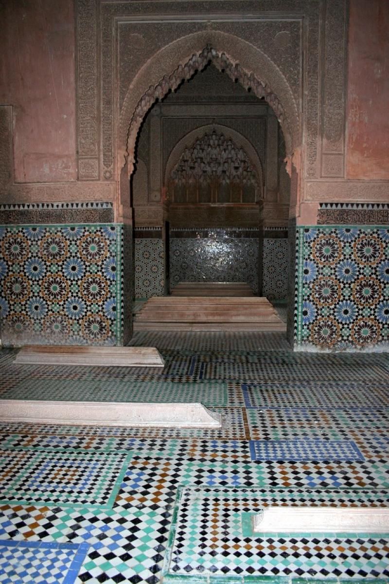 Buradan sonraki durağımız kraliyet mezarları oluyor. Eski bir saray kalıntısının içine kral ve kraliçelerinin naaşlarını gömmüşler ve bunların üzeri sadece mozaiklerle kaplı olduğundan, şehrin tam ortasında kalan bu kalıntıların mezar olduğu yıllarca anlaşılamamış. Sözkonusu kraliyet ailesinin soyunun Hz. Muhammed’e dayandığı iddia ediliyormuş. Bu eski kraliyet sülalesine Sadi’ler deniyor.