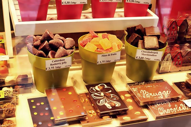 Belçika denince akla gelen ilk şeylerden biri olan çikolatalar da burada hem göze hem damağa hitap edecek şekilde sunuluyor. Tezgâhlarda sunulmuş ufak tadımlıklarla işe başlayarak çikolata seçimine geçebilirsiniz. Çikolataların süslemeleri ve sunumları o kadar estetik ki, onlara bakarken yemeye kıyamayacağınızı düşünüyorsunuz.