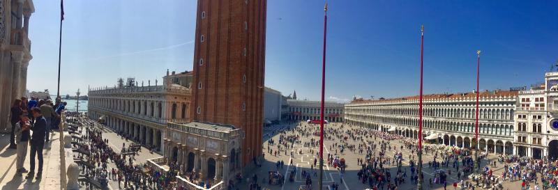 Vaktiniz olursa aynı meydanda bulunan Correr ve Arkeoloji Müzelerini de gezebilirsiniz. Yukarıdaki resim tüm bu eserleri göreceğiniz San Marco Meydanı'nın (Piazza San Marco) bazilikadan çekilmiş panoramik hali.