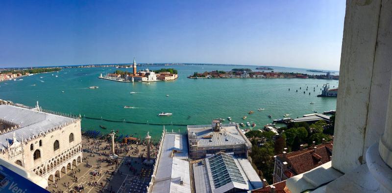 Bazilikanın karşısında bulunan Aziz Mark'ın Çan Kulesi(Campanile di San Marco) ise 99 metre yukarıdan Venediğin güzeller güzeli panoramik manzarasını görmenize fırsat sağlıyor. Yukarıya çıktığınızda Venedik'i ayıran kanalların kuleden görünmediğini farkedeceksiniz ve şaşıracaksınız. Venedik'in tek parça gözüktüğü tek yer bu kule olabilir. :) Kuleye çıkış asansörle sağlanıyor, bedeli 8 Euro.