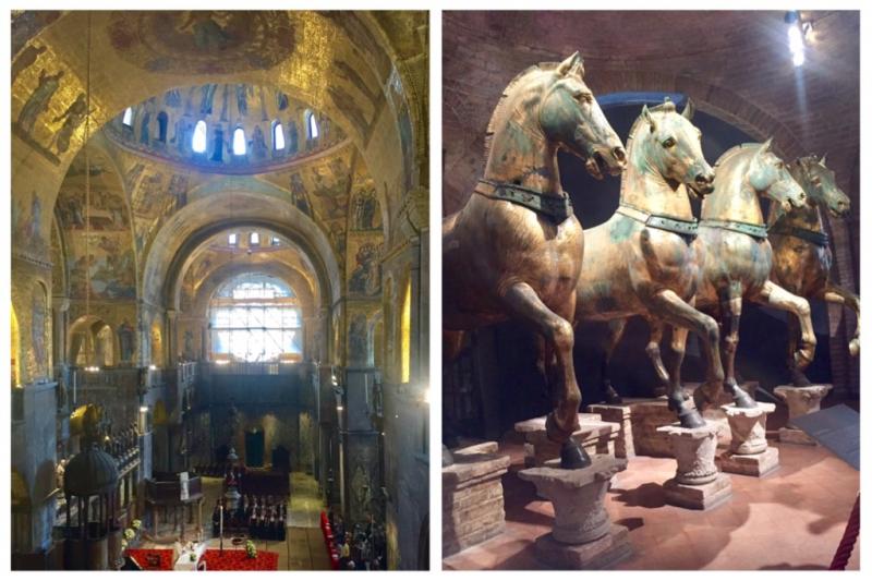 San Marco Meydanı'nda bulunan, Ayasofya'dan esinlenerek yapıldığı söylenen San Marco Bazilikası'nın (Basilica si San Marco) içi de en az dışı kadar etkileyici... Resimden göreceğiniz üzere duvarları altın kaplama olan Bazilika "Altınların Kilisesi" olarak anılıyor. Bizans döneminde İstanbul'dan çalındığı söylenen 4 atlı bronz heykeli de burada bulunuyor. Girişi ücretsiz.