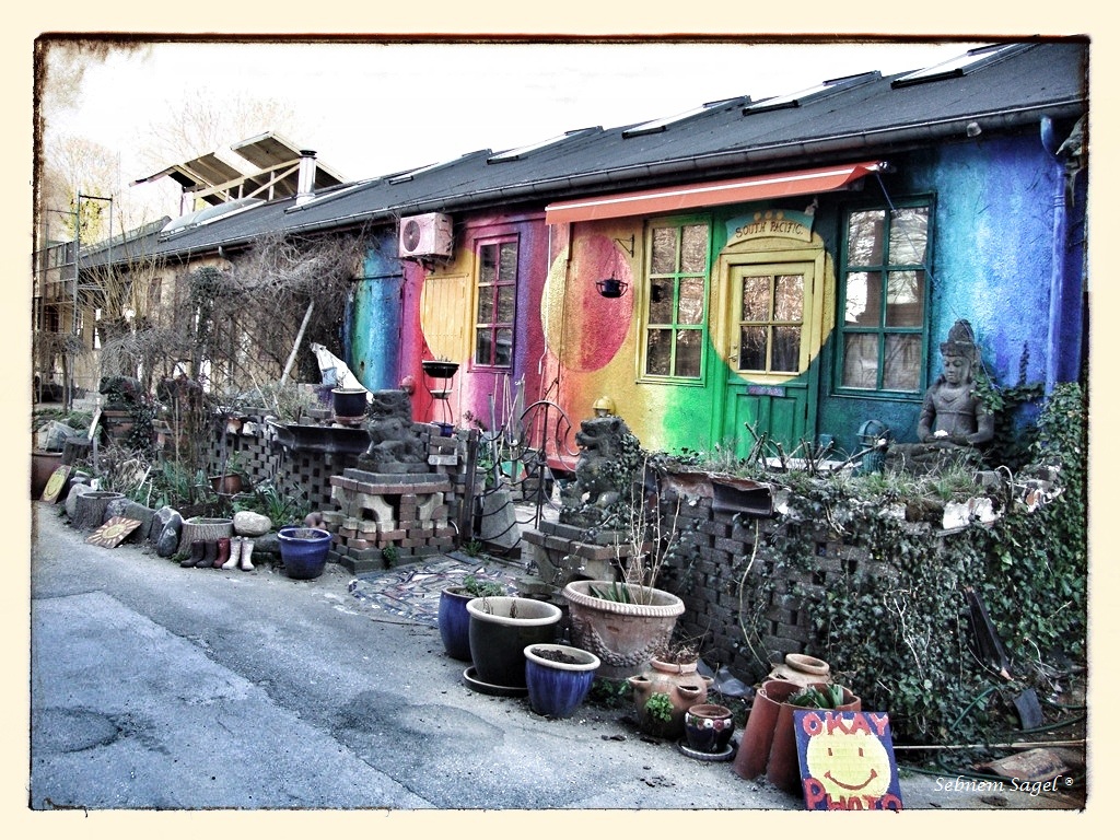 Ve tabii ki Hristiyanya (Christiania)..! Hayatımda gördüğüm en ilginç yerlerden biri.. Kopenhag’ın modern sokakları arasında dolaşırken sanki birden zaman makinasına girip 1970’lerin hippi hayatına geri dönüyorsunuz. Kendi bayrağı, kendi yönetimi olan özgür bir bölge burası.. Dünyanın en refah ülkelerinden birinde böyle bir yer görmek insanı oldukça şaşırtıyor.. Burda yaklaşık 850 kişi yaşıyormuş, fotoğraf çekmek kesinlikle yasak. Merkezi ısıtma yok, sobayla ısınıyorlar. Giyilmeyen kıyafetlerin bırakıldığı bir baraka var, ihtiyacı olan buradan gelip kendine uygun kıyafet alabiliyor. Bir evin önünde ‘Okay Photo’ yazıyordu, ben de hemen çektim tabii..