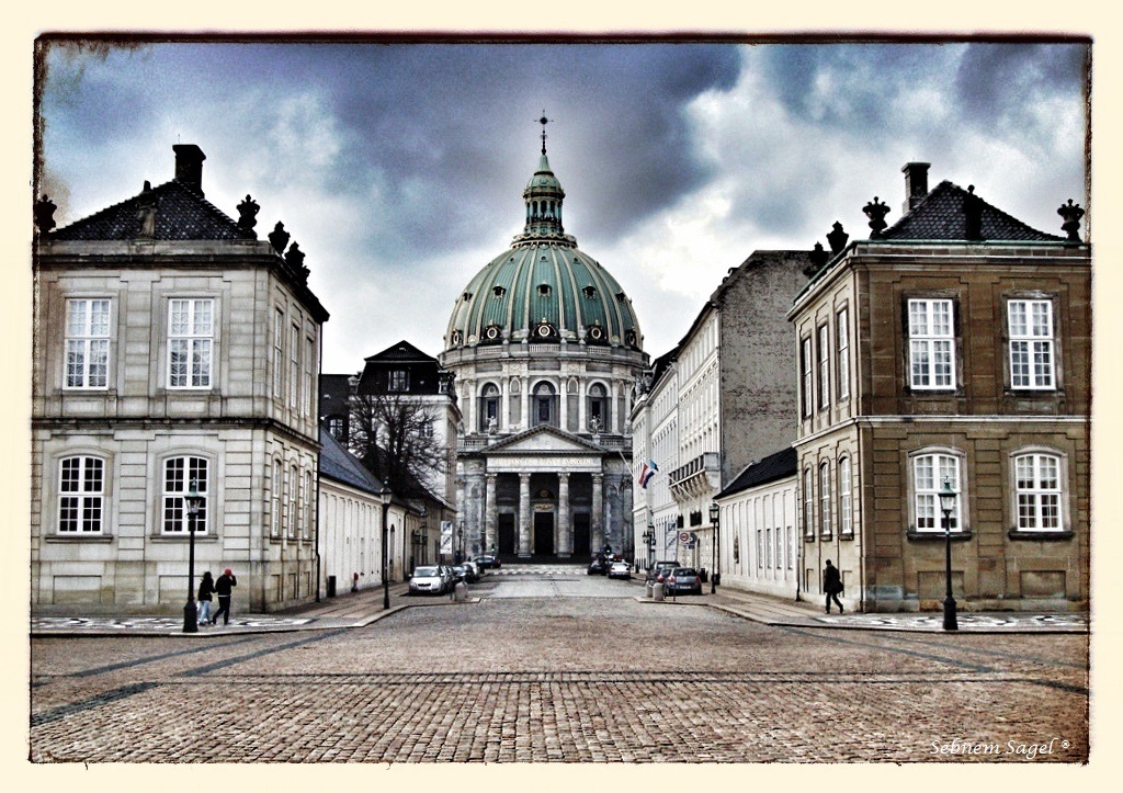 Kraliyet sarayı (Amelienborg Palace) birbirine eş olarak yapılmış dört binadan oluşuyor ve bu dört bina ortak bir avluya bakıyor, 1974‘teki şehir yangınında Christiansborg Kalesi yanınca burası Kraliçe II.Margarethe’nin resmi ikametgahı olarak kullanılmaya başlanmış. Avlunun ortasında V.Frederik’in (Danirmarka ve Norveç Kralı) heykeli bulunuyor. Askerlerin öğlen saat 12:00’de olan nöbet değişimi de izlemeye değer..