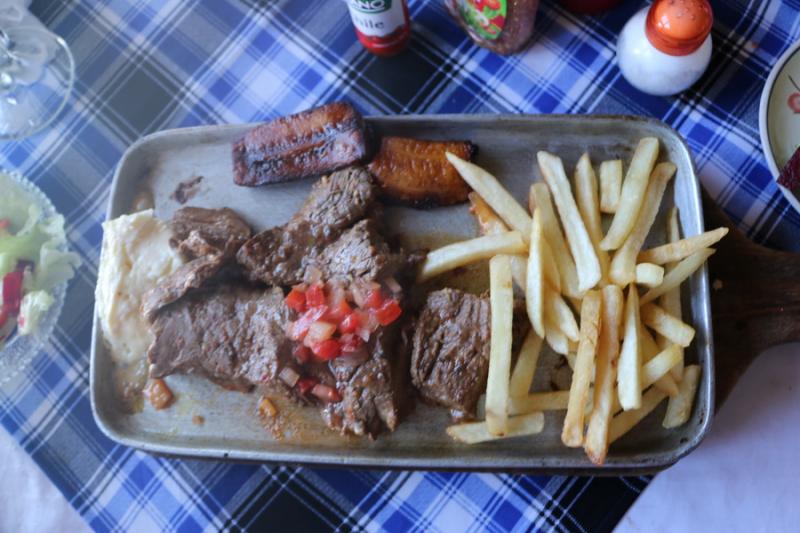 Bu kasabada ilk olarak Apoyo Lagünü manzaralı bir restorana oturuyor ve yemek sipariş ediyoruz. Et, muz kızartması ve patates kızartması var menüde. Orta Amerikalılar et işini gerçekten iyi biliyor.