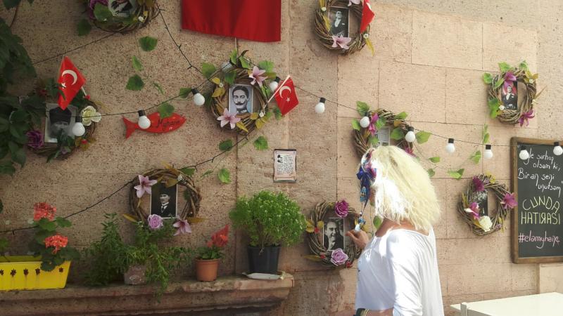 Gün ortasında, Arnavut kaldırımlı ara sokaklara daldım. Cıvıl cıvıl bir kafe önünde mola verdiğimde duvarları Atatürk resimleri ile donatılmış bir sokak ve bir masada Hüsnü Amca ve yanındaki dostlar ile tanıştım. Hüsnü Amca 87 yaşındaydı. Halen iş kaygısı taşıyordu. Ayvalık’ta çalıştığını ve eşi Sakize Hanım’ı, Zülüf Hanımsa erken kalktığını ve papalinaları temizlediğini anlattı. Papalinayı ilk kez duymuştum. Cunda Adası’na özgü olan balık, sardalye balığının yavrusu, boyut bakımından hamsiye benzeyen, çok lezzetli, çerez gibi tüketilebilecek bir balık çeşidi. Bu arada, her akşam ızgara papalina tükettim.