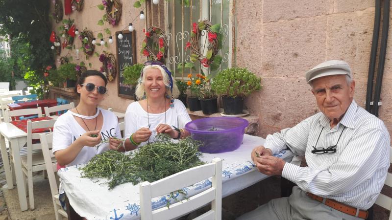 Sokaklarda gezerken birbirleriyle Rumca sohbet eden yaşlı amca ve teyzeleri sokak kapılarının önünde görmek ve duymak her an mümkün. Satılık tarihi bir eve girdim. Kapıdan içeri girer girmez eski Rum evinin güzel sesleri ve kokuları karşılıyor sizi. Rum evleri, kapı tokmaklarından, iç mimarilerine kadar enteresan. Salonda sarnıç görmeniz mümkün. Geri dönerken yine dar sokaklardan geçtim. Girit’ten gelen teyzeler kapı önlerinde oturmuş akşam sohbetindeler. 1879 yılında yapılmış bir evin önünde tarihi kokladım. Dar sokaklarda yürürken ise kırmızı yanaklı teyzelerin masum yüzlerindeki gülümsemeyle karşılaştım, sohbet ettik. Ahmet Amca, Güldane ve Megara Teyze ile güneşi birlikte uğurladık. Aralarında dayanışma var. İnsanlar arkadaş canlısı, hoşgörü oluşmuş yüreklerinde.