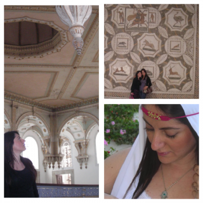 Müze çıkışı seyyar satıcıların istilasına uğruyoruz. İçlerinden biri beyaz başörtüleri ve yanında aksesuarlarını satıyor. Sırf elindeki çingene pembesi parlak işlemeli ipi gördüğüm için adamdan örtüyü satın alıyorum. Zaten ben satıcıya tamam demeden o kafama örtüyü geçirmişti bile. 5 dinardan açtığı fiyatı 1 dinara indiriyoruz. Aksesuarım, pembe fistanım ve kolyemle beraber şimdi tam Tunuslu oldum : )