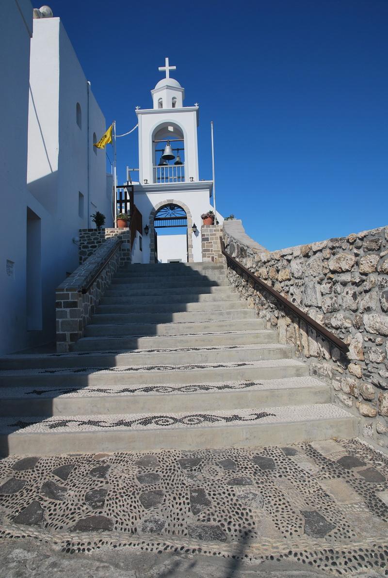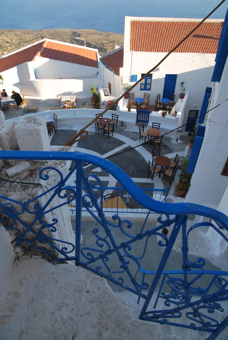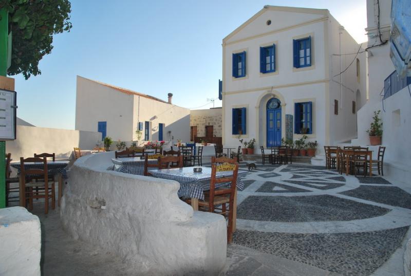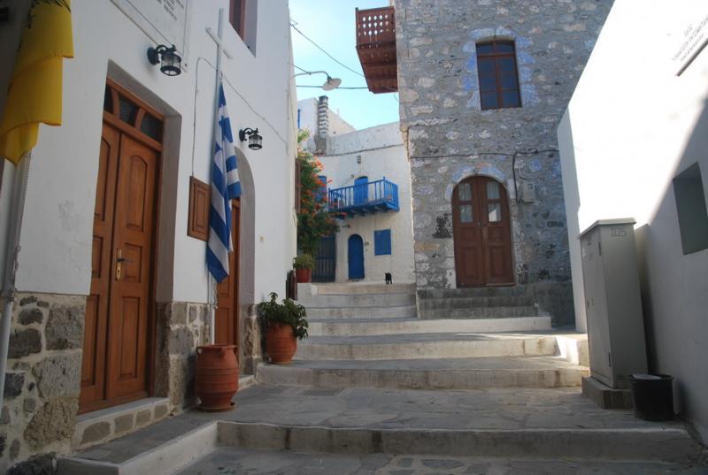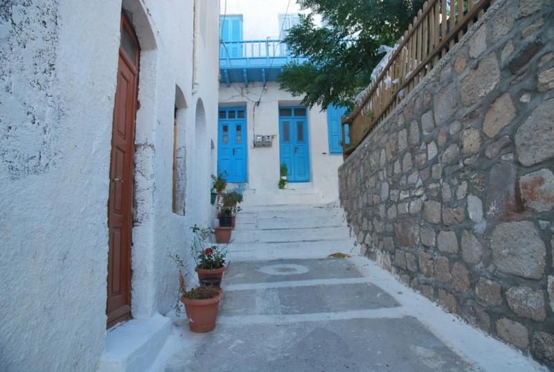 Buradan yavaş yavaş adanın merkezi olan Mandraki’ye doğru gidiyoruz. Ada nüfusunun yaklaşık % 60’ı burada yaşıyor. Merkezde yer alan beyaz badanalı evler, renkli kapı ve pencereler, evlerin önündeki muntazam dizilmiş taştan yollar ve daracık sokaklar bu adaya hayat veren en önemli unsurlar.