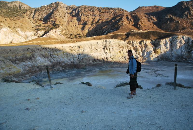 Volkanik hareketliliğin olduğu adanın birçok noktasında termal su kaynakları da varmış. En ünlü sıcak su kaynağı ise Mandraki’ye çok yakınmış. Bu bölgeden çıkartılan taşları ve bölgenin oluşumunu anlatan panolar kraterin yanında yer alan küçük kulübenin duvarlarında asılı.