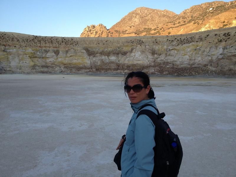 Tam siz de bu manzaraya bakarken adanın tarihi ile ilgili biraz bilgi vereyim. Mitolojiye göre, Zeus Titanlara karşı savaşır. Bu savaşta deniz tanrısı Poseidon Zeus’a yardım eder. Birlikte korkunç bir dev olan Polybotis’i bu bölgeden kovalarlar. Bu sırada Poseidon, Kos Adasından ufak bir parça kopartıp Polybotis’e fırlatır. Polybotis bu parçanın altında kalır. Nysiros işte bu fırlatılan ada parçasıdır. Polybotis adanın altında gömülü kalır. Adadaki volkan Polybotis’in ağzını temsil eder. Adadaki sürekli volkanik hareketler ise Polybotis’in iç çekiş ve sızlanmalarıdır.